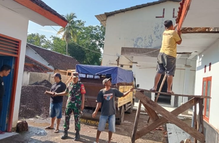“Babinsa Desa Bojonglarang dan Warga Setempat Gelar Karya Bakti Perehaban Kantor Desa”