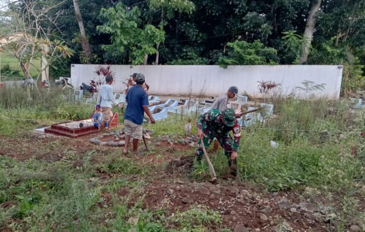 Babinsa Desa Padaasih Serda Randy Purwaji Gelar Karya Bakti Bersama Warga, Bersihkan TPU Sirnaraga