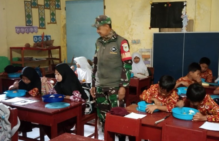 Babinsa Desa Sukamanah Pastikan Makanan Bergizi Gratis untuk Siswa, Menjaga Kesehatan dan Pendidikan Masyarakat