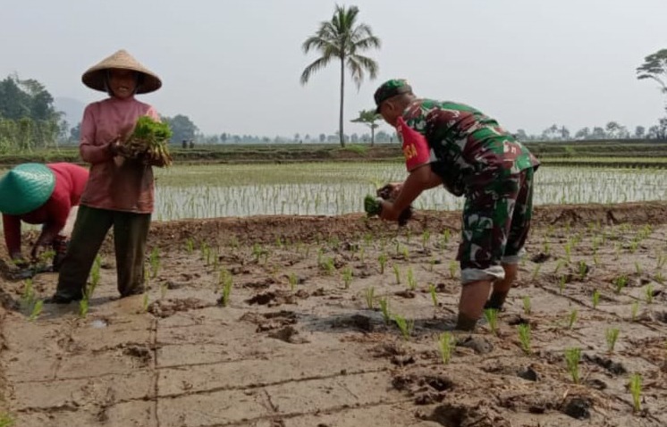 Babinsa Desa Cibadak Tanam Padi, Dongkrak Ketahanan Pangan Masyarakat