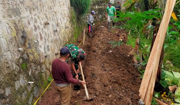 Babinsa Desa Talaga Lakukan Karya Bakti Pembuatan Pondasi Saluran Irigasi
