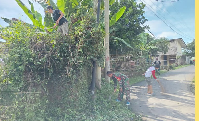 Babinsa Desa Sarampad Lakukan Karya Bakti Pembersihan Jalan Protokol