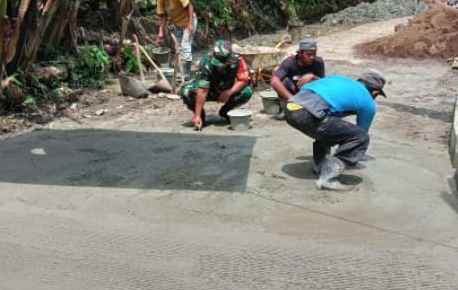 Babinsa Desa Kemang Lakukan Karya Bakti Pembuatan Gorong-Gorong