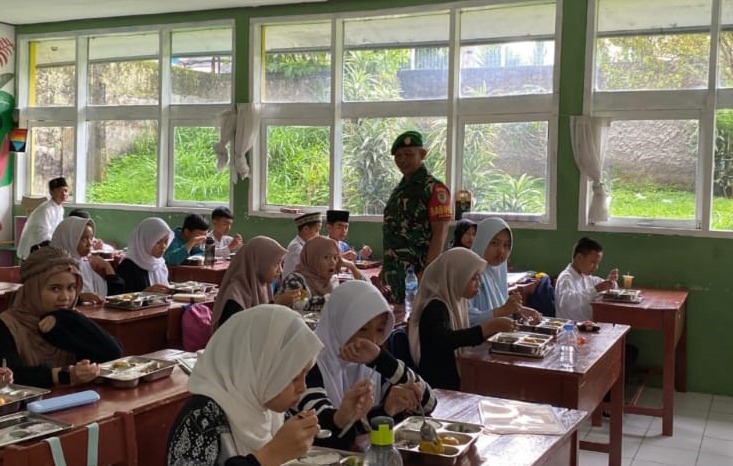 Babinsa Desa Cipanas Lakukan Monitoring Pendistribusian Makan Bergizi Gratis