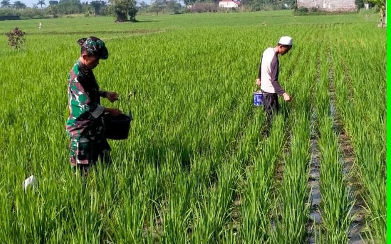 Babinsa Desa Purabaya Lakukan Pendampingan Perawatan dan Pemupukan Tanaman Padi