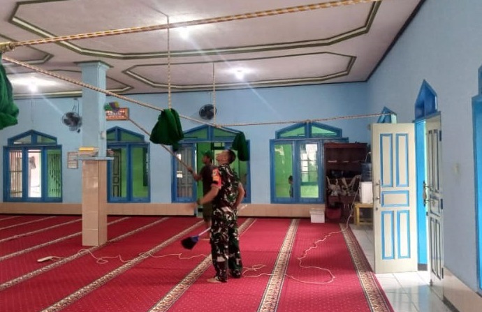 Babinsa Desa Hegarmanah Lakukan Pembersihan Masjid Al-Ikhlas Bersama Warga