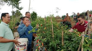 DANDIM 0608/CIANJUR SAMBUT KUNKER JENDRAL TNI (Purn) PROF. Dr. H. DUDUNG ABDURAHMAN TINJAU LAHAN PERTANIAN