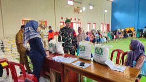 CIANJUR – Sertu Harmoko, Babinsa Sukalaksana, anggota Koramil 0608-10/Sukanagara, menyaksikan langsung penyaluran bantuan beras kepada warga Desa Sukalaksana pada hari Senin, 11 Agustus 2025. Kegiatan ini dilaksanakan di Aula Desa Sukalaksana dan dihadiri oleh Kepala Desa Sukalaksana, perangkat desa, ketua RT dan RW, serta warga penerima bantuan.