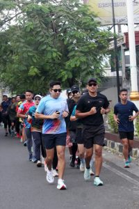 CIANJUR – Komandan Kodim (Dandim) 0608/Cianjur, Letkol Inf Bistok Barry Simarmata, S.Hub.Int., M.S.S., memimpin langsung kegiatan Morning Run bersama Community Morning Class dan tim Binjas Kodim 0608/Cianjur. Kegiatan yang berpusat di Makodim 0608/Cianjur ini diikuti oleh sekitar 200 peserta dengan protokol kesehatan yang ketat, diawali dengan pengecekan denyut nadi serta pemanasan sebelum memulai lari. Turut hadir mendampingi Dandim antara lain Kasdim 0608/Cjr Mayor Arm Nanda Supriatna beserta jajaran Perwira Staf dan perwakilan Danramil, Sabtu (10/01/2026).